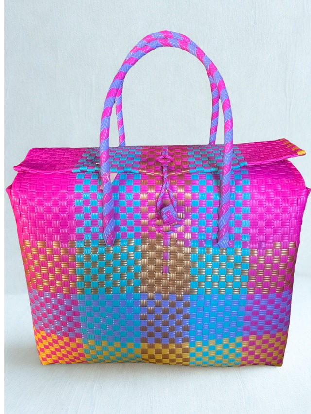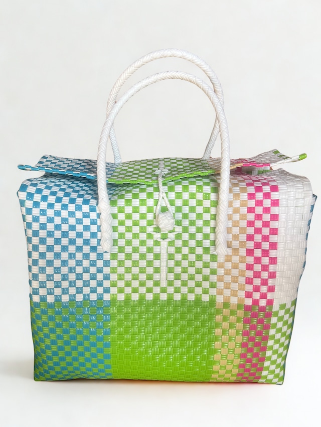市場(パサール)バッグ[ PASAR BAG ] バリ島のかごバッグの中でも大人気のパサールバッグ。お買い物したものを何でも入れられる特大のLサイズです。 約40cmのスクエア型、マチもたっぷり。 おしゃれで水にも強く、かわいいパサールバッグはさまざまなシーンでお使いいただけます。お買い物、リゾートのビーチやプール、ピクニック、マザーズバッグにも。 水気がついたら、 軽く拭くだけ。普段づかいに気兼ねなくお使いいただけます。 ※インドネシア製のハンドメイドのため、サイズに個体差がある場合がございます。ご了承下さい [サイズ] w40×h40×マチ20cm ハンドルの高さ20cm [材質]ポリエステル [原産]インドネシア ※お使いのブラウザ環境などにより、若干色みが異なる場合がございます。 ※すべて職人による手作りです。そのためサイズに若干の差異がございます。