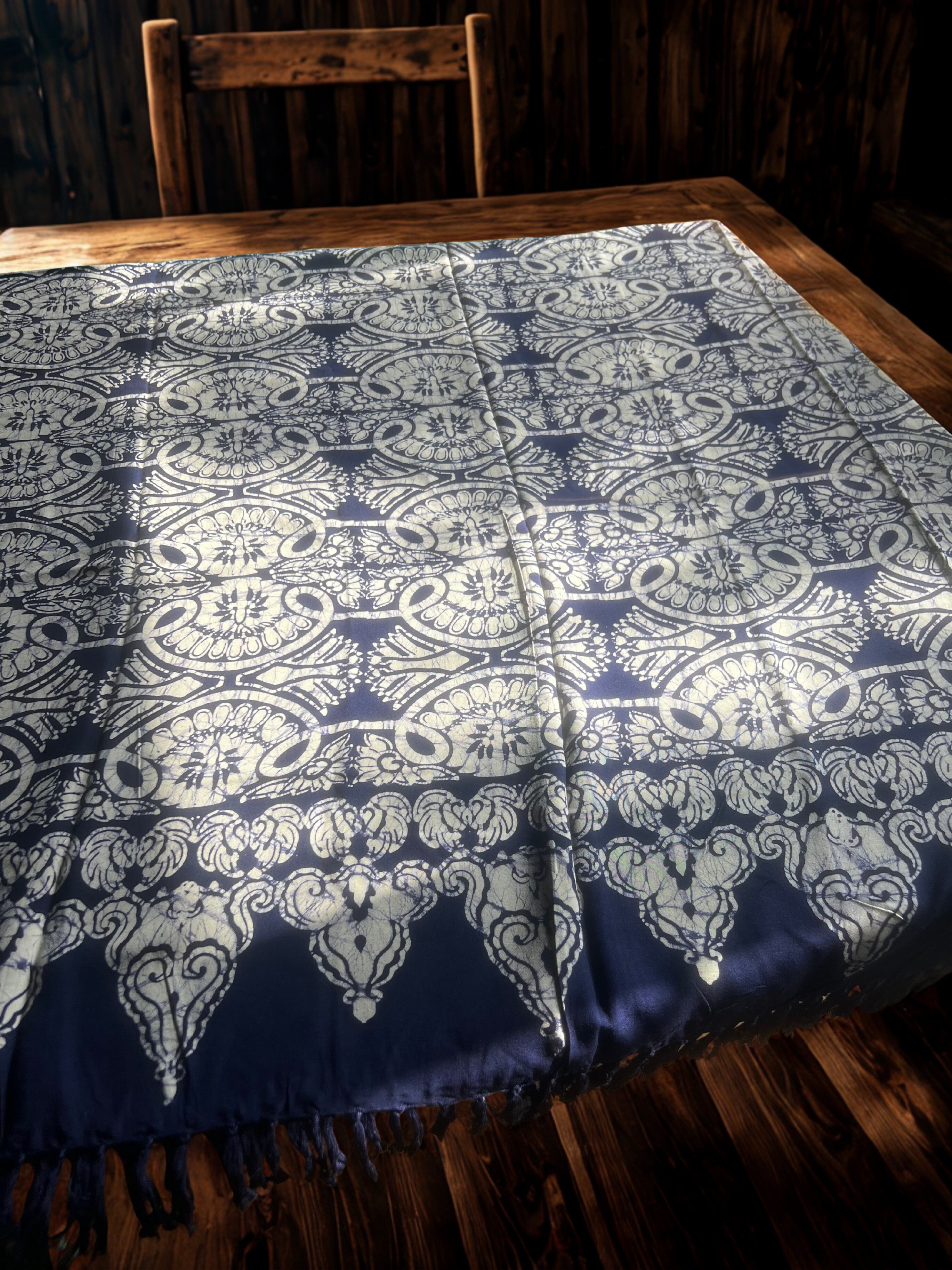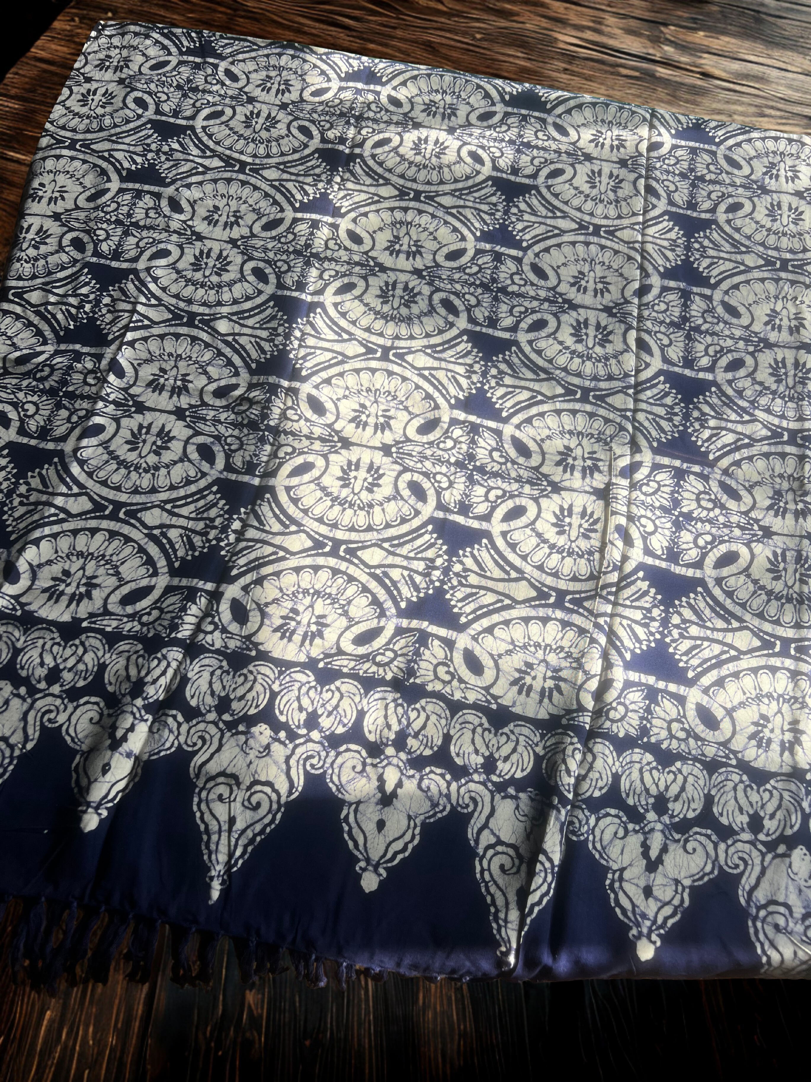 旅するバティック*上質プリント布*インドネシア布*白×ネイビー*送料込み